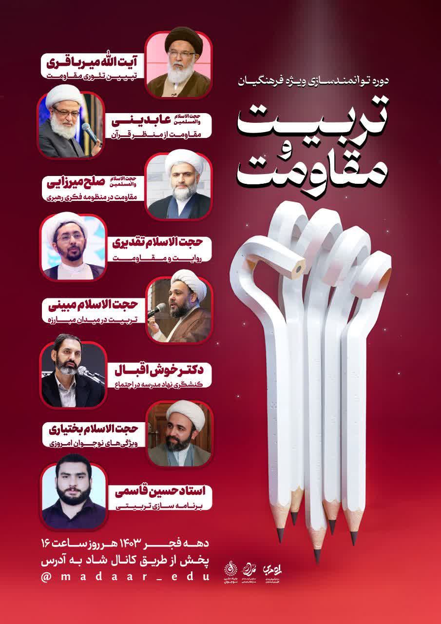 دوره تربیت و مقاومت ویژه فرهنگیان و فعالان تربیتی با حضور اساتید برتر برگزار میشود.